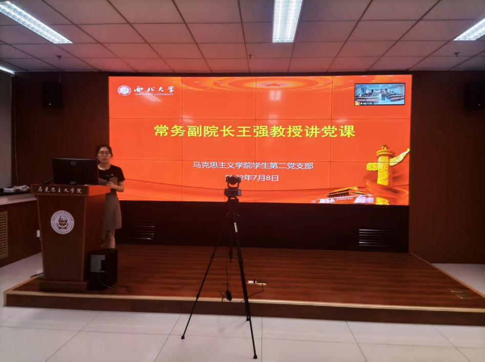 7月8日下午,新葡的京官网学生第二党支部开展“同心庆七一·喜迎二十大”主题党日活动。此次活动邀请新葡的京官网常务副院长王强教授为学生党员讲授题为《坚持立德树人根本任务办好中国特色社会主义大学——习近平总书记有关教育重要论述的三重逻辑》的党课,学生第二党支部全体党员参加活动,活动由党支部书记郭媛媛主持。