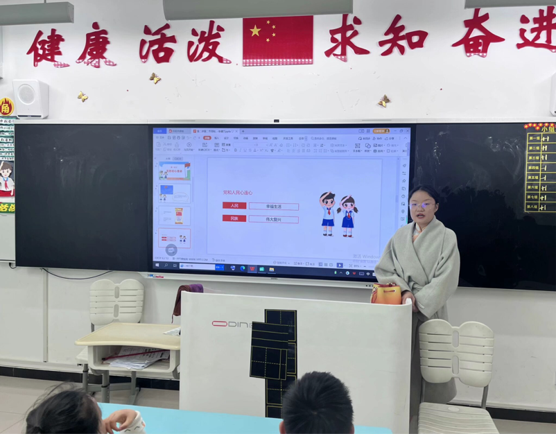 黄雅利以《我自豪我是中国人》为题,带领学生在新四大发明中感受今日中国的蒸蒸日上,在古代四大发明中见证中华民族的灿烂辉煌,在新旧交替中激发同学们的爱国情和自豪感。