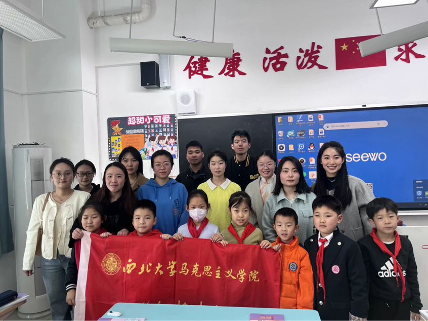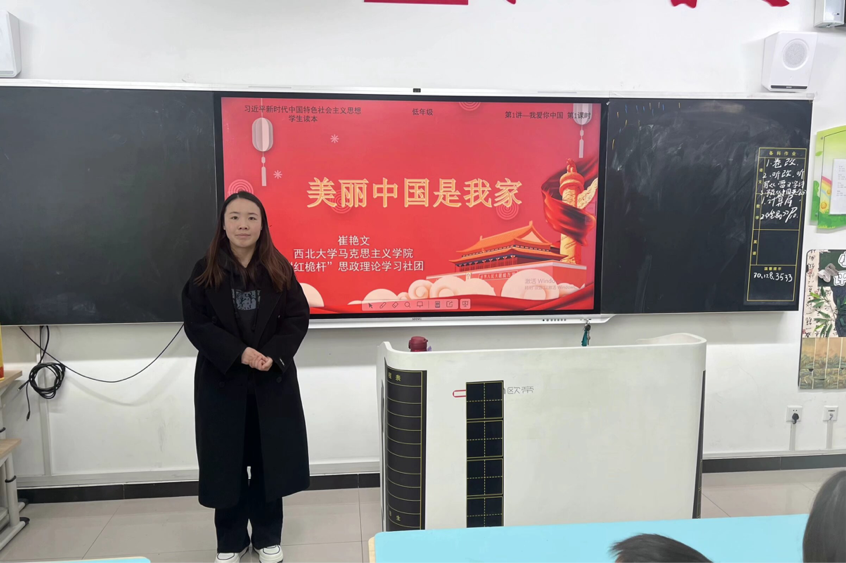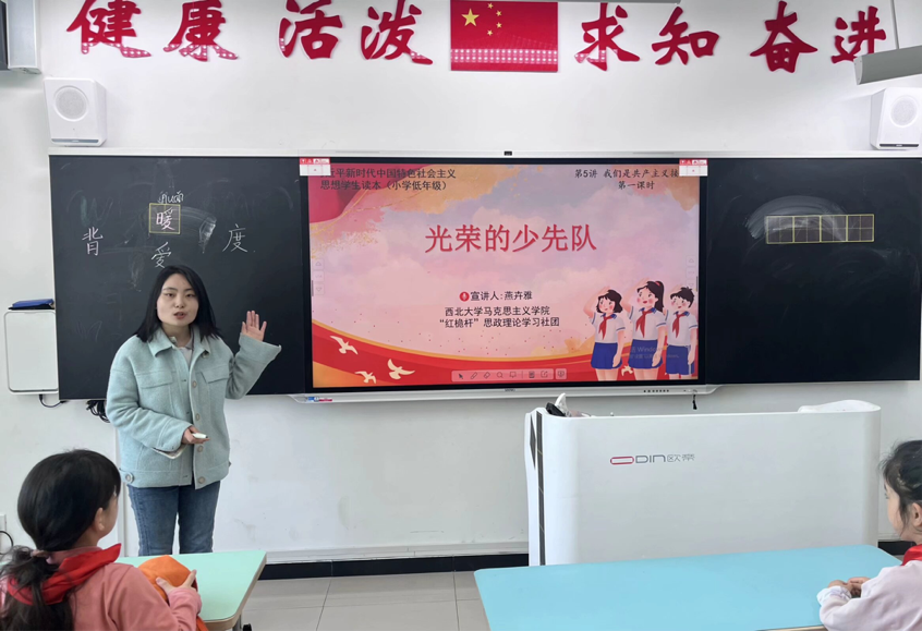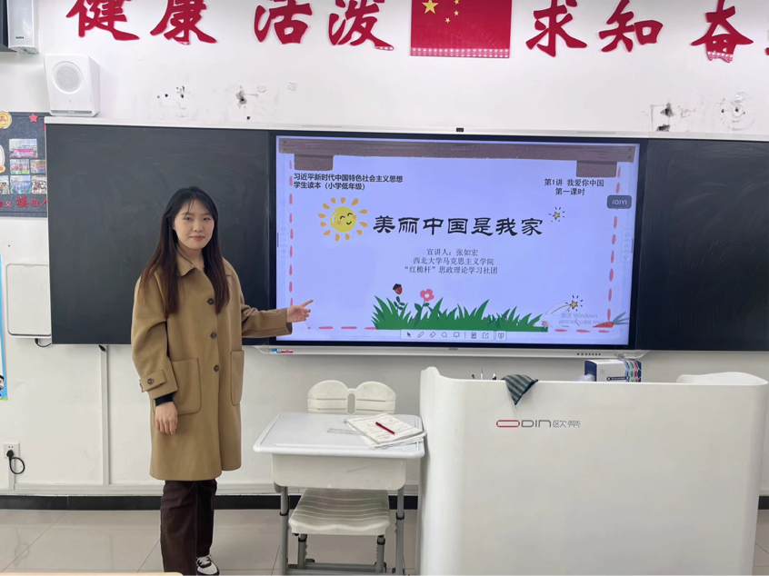 3月11日,新葡的京官网红桅杆思政理论学习社团在西安市长安区第一小学实验小学,以《习近平新时代中国特色社会主义思想学生读本》(小学低年级)为主要内容,为二年级的小学生讲授思政课。主讲人分别是来自2022级和2023级的思想政治教育、马克思主义中国化研究与中国近现代史基本问题研究专业的11位硕士研究生。