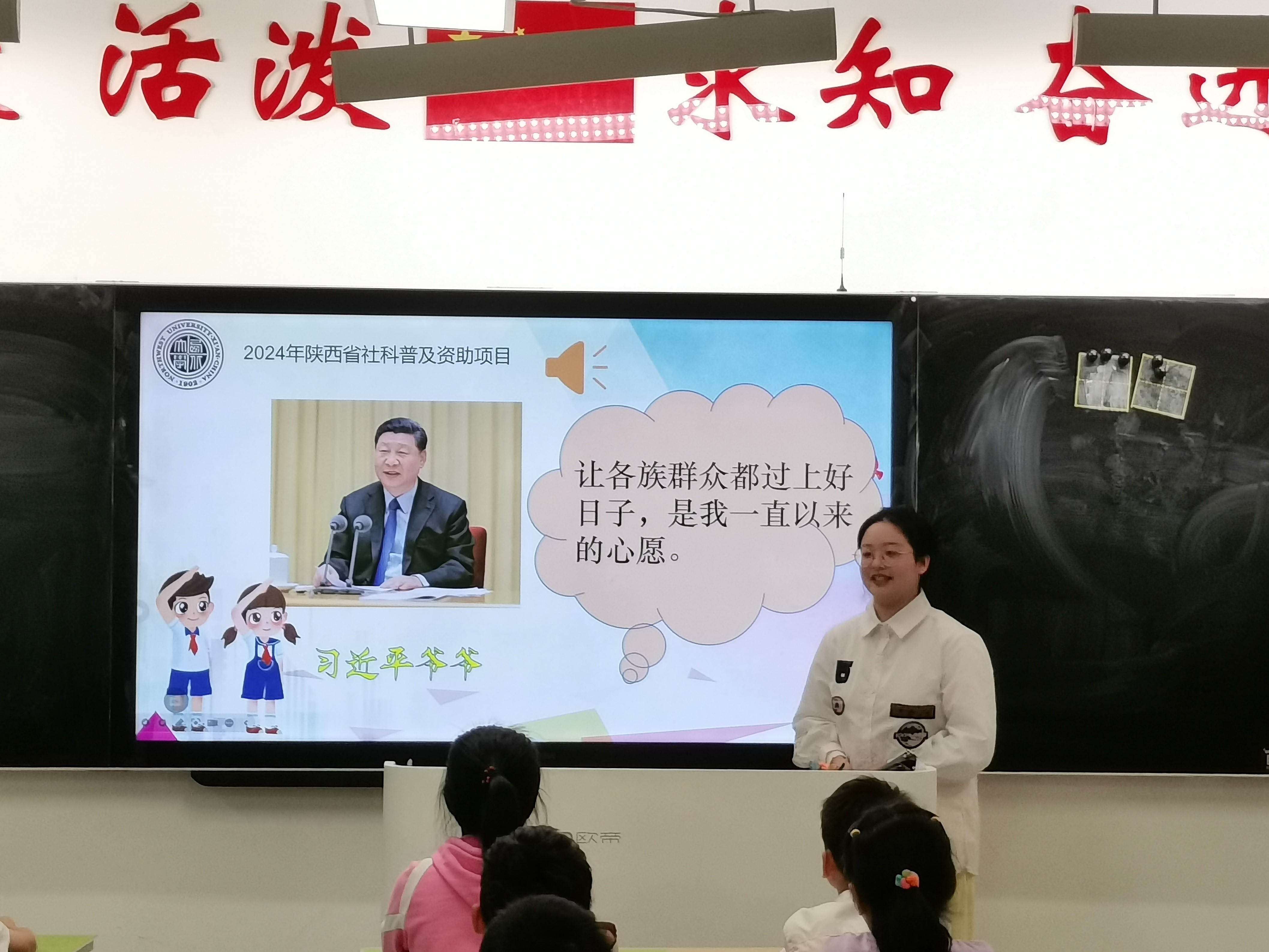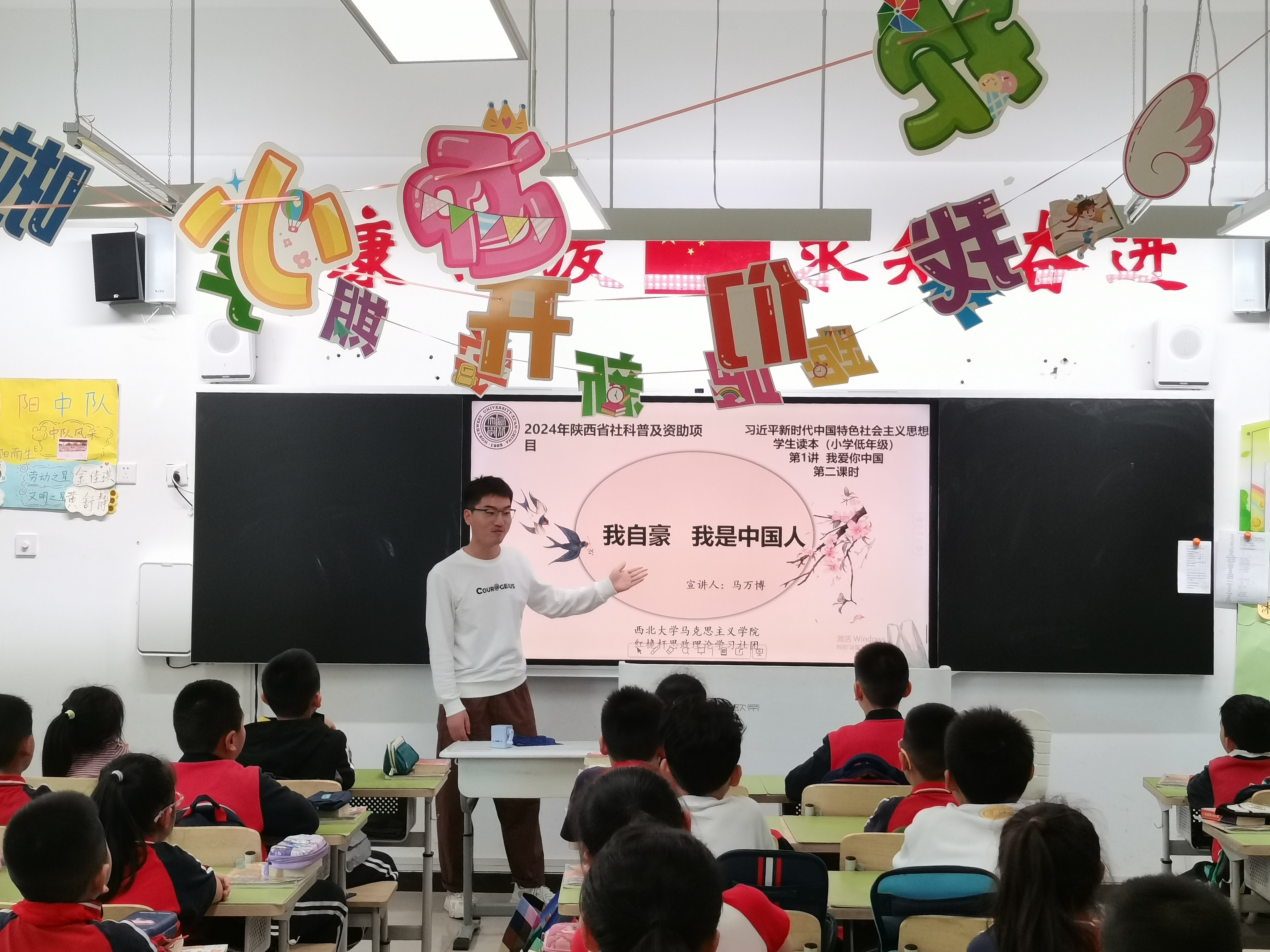 10月9日,新葡的京官网红桅杆思政理论学习社团在西安市长安区第一小学实验小学,以《习近平新时代中国特色社会主义思想学生读本》(小学低年级)为主要内容,为二年级的小学生讲授思政课。主讲人分别是来自2024级马克思主义基本原理、马克思主义中国化研究、思想政治教育与中国近现代史基本问题研究等专业的13位硕士研究生。