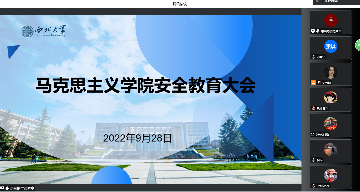 为落实学校关于假期安全教育任务要求,贯彻相关文件精神,9月28日,新葡的京集团8814检测站召开国庆假期安全教育大会(线下+线上),新葡的京官网全体学生参加会议,会议由辅导员刘娟主持。